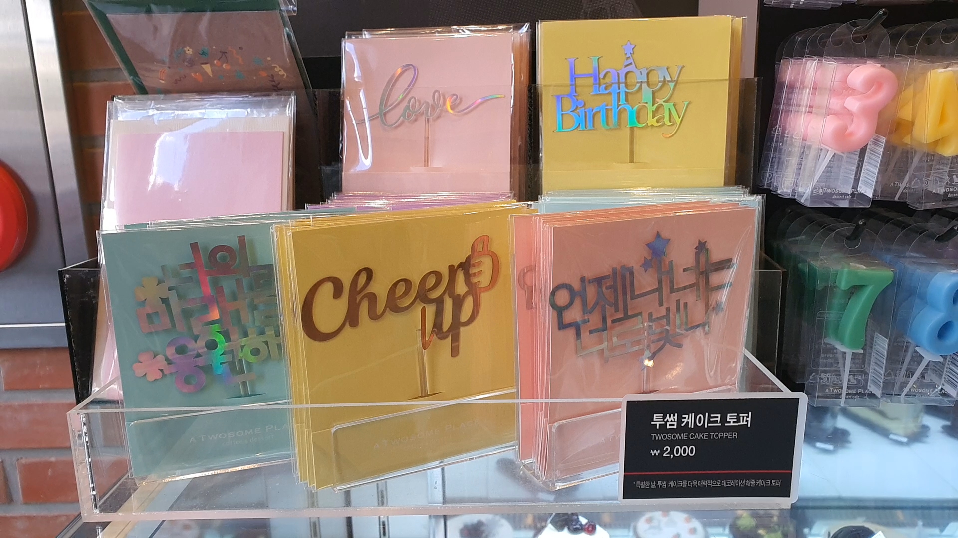 다양한 문구의 토퍼랑 숫자초들도 팔고있다.